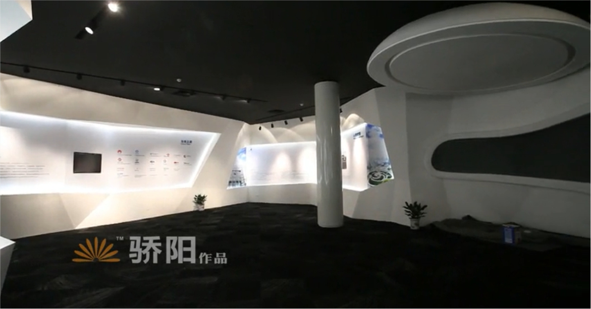 展廳內(nèi)大量使用圓形裝飾元素,通過(guò)圓的交錯(cuò)、層續(xù),使參觀者在遠(yuǎn)處目光即被吸引,空間景象靈動(dòng),視覺(jué)充滿張力,空間整體擁有更多想像外延。