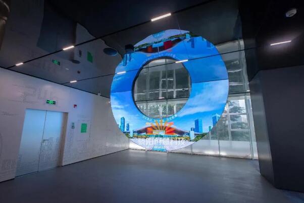 深圳之眼通過高反射天花、半圓環(huán)拼接屏呈現(xiàn)出“圓環(huán)鏡像”效果。