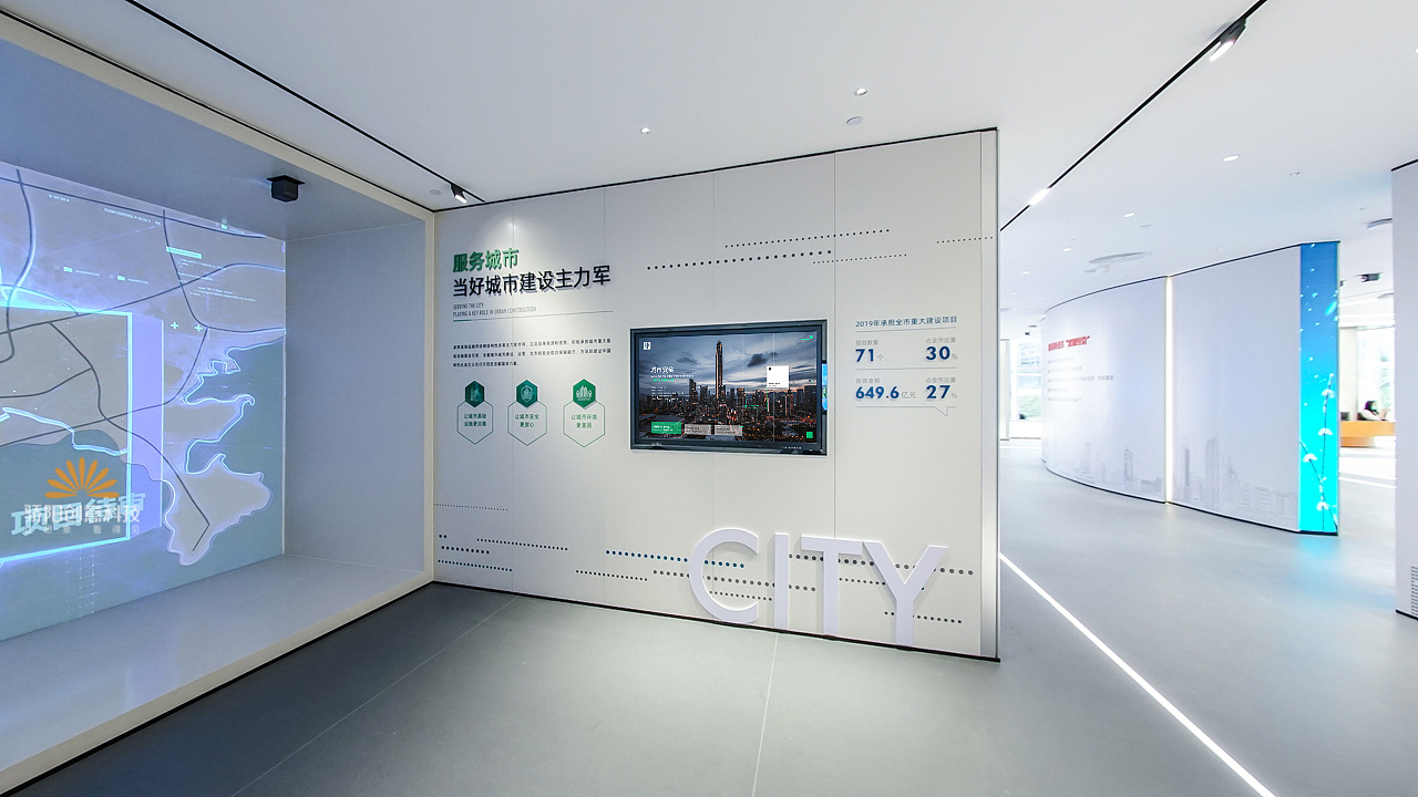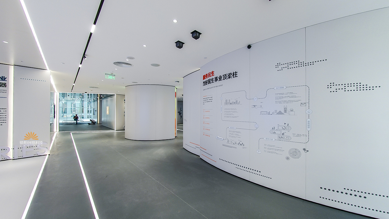 智慧國資管理展示中心項目位于深圳,展廳面積2250m2。整個展廳分為展示區(qū)和功能區(qū);展示區(qū)主要分為序廳、歷程廳、鵬城24小時、成就廳、智慧國資大屏5大板塊內(nèi)容。功能區(qū)主要由多功能廳、視頻會議室、接待室、休閑區(qū)等部分組成。